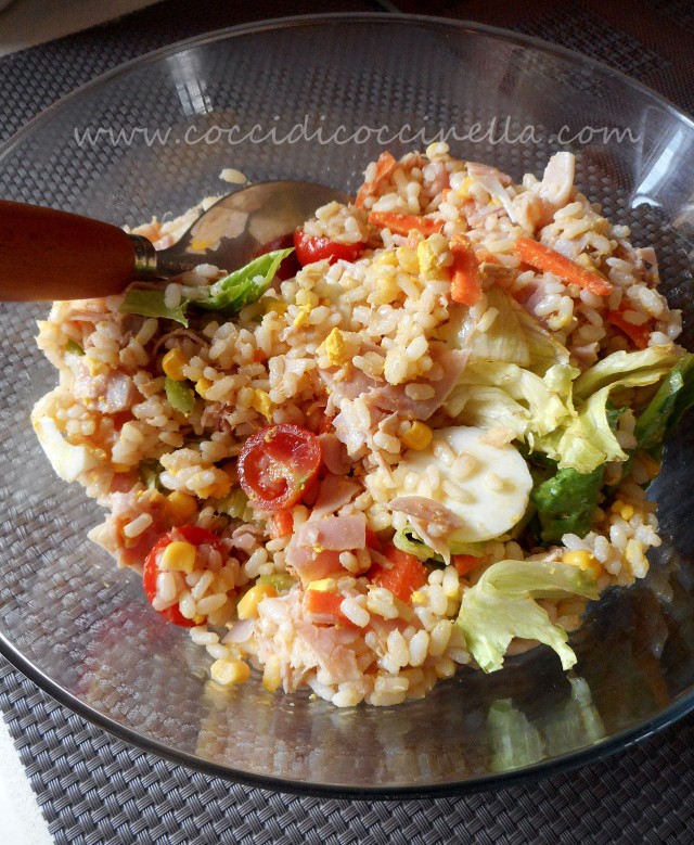 Ognuno fa una personale insalata di riso in base ai gusti, l’importante è NON comprare quei preparati in sott’olio e sott’aceto che si trovano nei supermercati pronti per farcire le insalate di pasta o di riso. Assaggiate un’insalata così come ve la propongo io e sentirete la differenza.