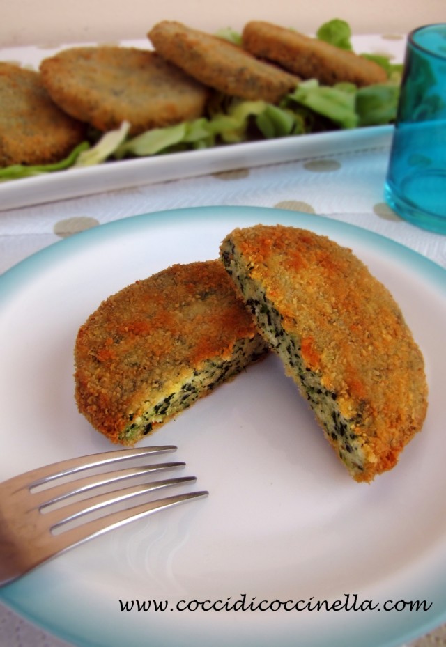 - Passare ogni spinacina prima nell'uovo sbattuto e poi nel pangrattato.